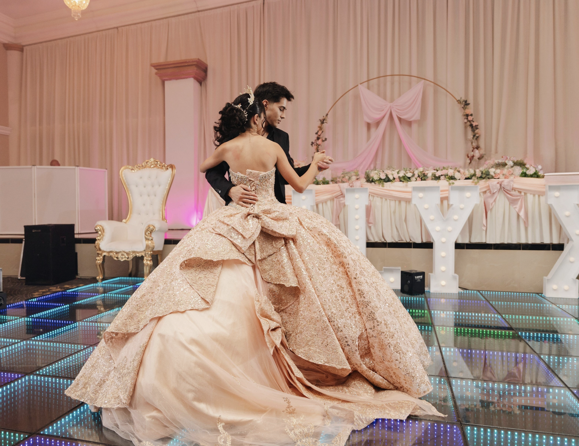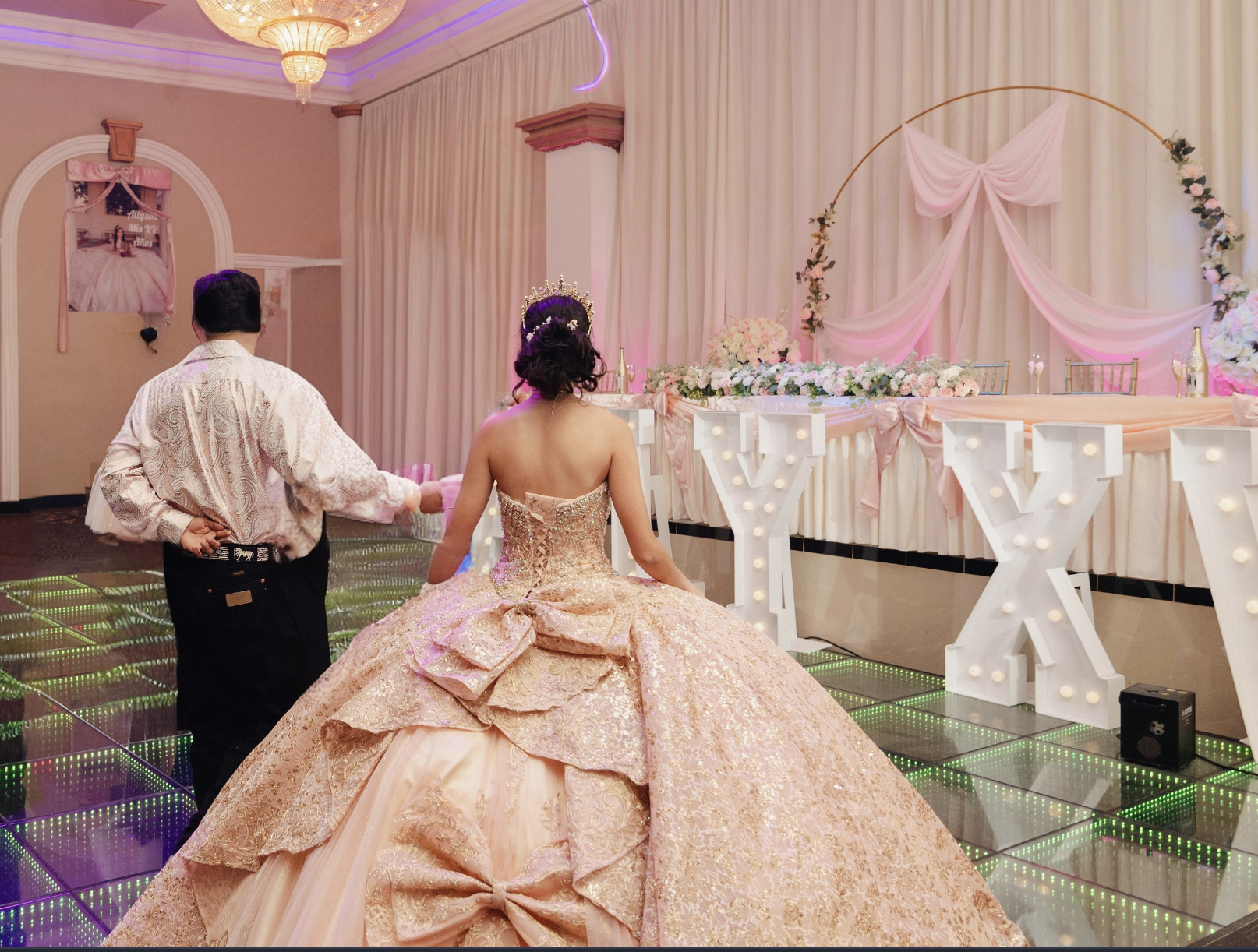 You dream it, we plan it, and we execute it with passion. Our Event Planners are experts at planning a Quinceañera that is both memorable and flawless. The day of the event, your personal hostess, who will escort you to your suite and cater to the needs of you and your family. From the moment your guests arrive, they will be swept away by the beautifully appointed ballroom, crystal chandeliers and table settings accented with up lighting and table linens in a wide selection of colors. We can customize a package to suite your budget.